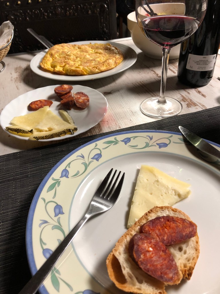Once again, I may have been a pilgrim by label, but at that moment, second day in a row, I was relishing my short-term status as a tourist. Also, it suddenly dawns on me that by having had some conversation with Bernie, who speaks very passable English, I feel less isolated from others than I’d been for the entire previous week… conversation has the power to connect people. The evening ends with a hearty country meal, followed by a good night’s sleep. Tomorrow has to start early as several challenging days lie ahead.