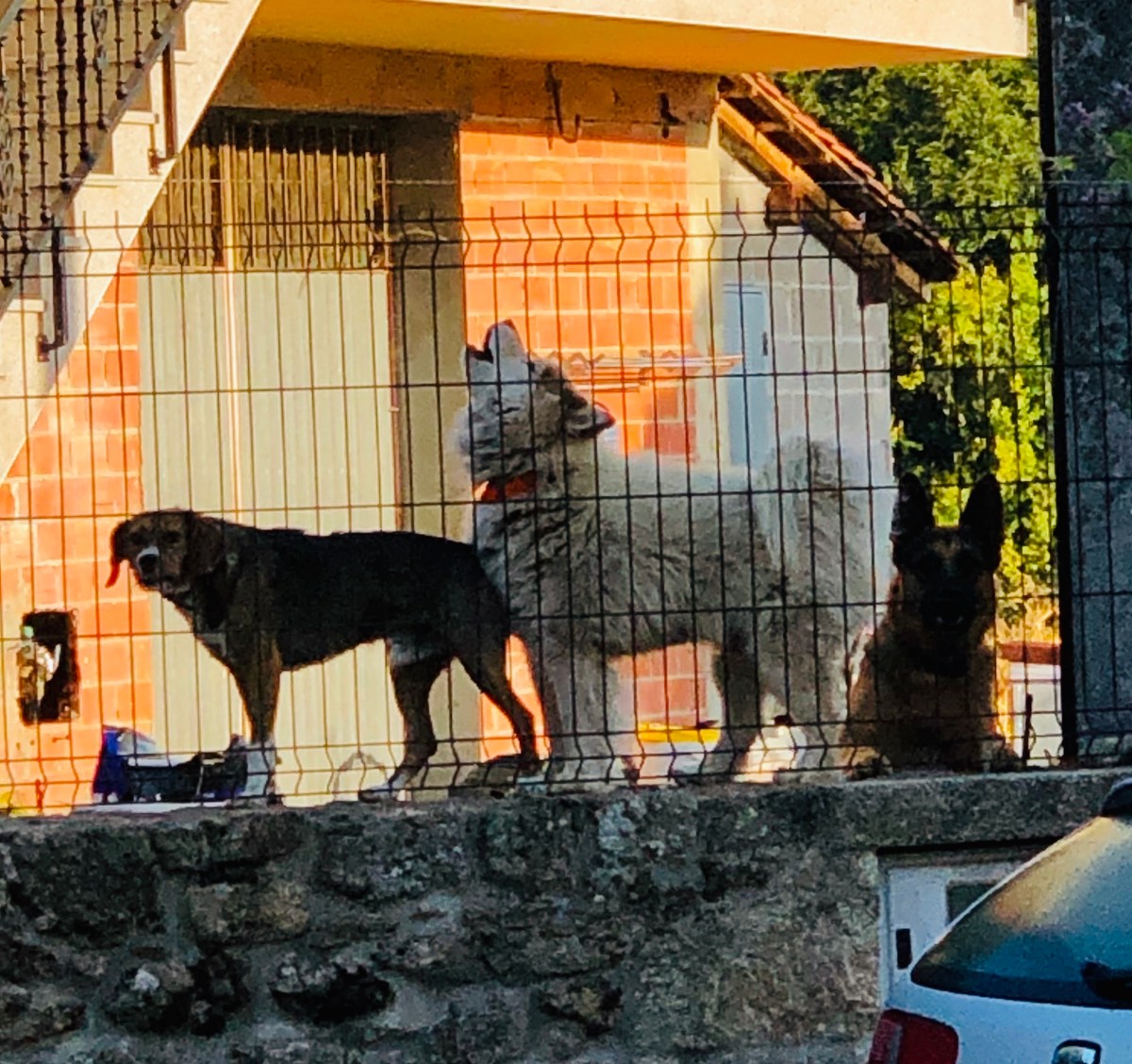 It starts as it ended the previous day, a pleasant walk through rolling farmland dotted with remote but very substantial homes and outbuildings. For days now I’ve been encountering guards dogs, large and loud, either tethered by a chain or behind a fence. Reports from previous pilgrims on the Invierno have included stories of unpleasant encounters, but I’ve had none of those. Not far into my morning I’m greeted by a trio that did their jobs but seemed more friendly than threatening. Still, I was glad there was a wall and fence between us.
