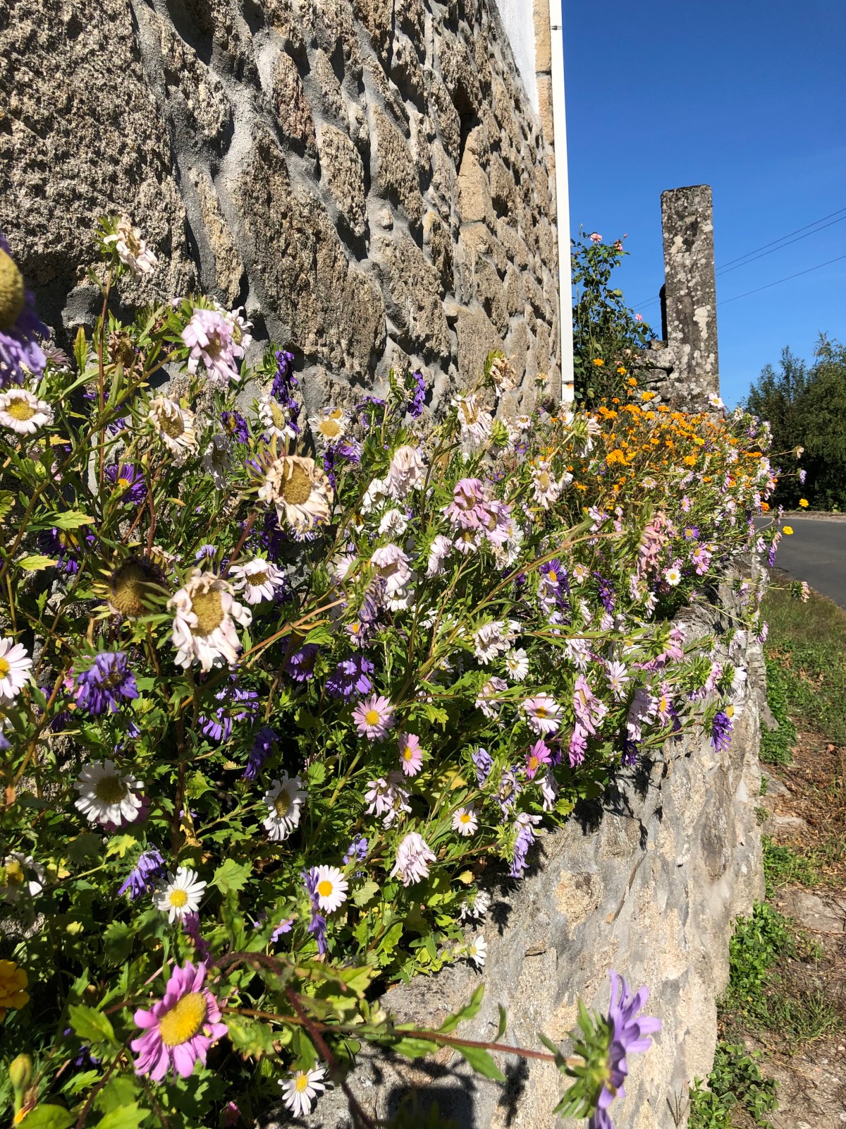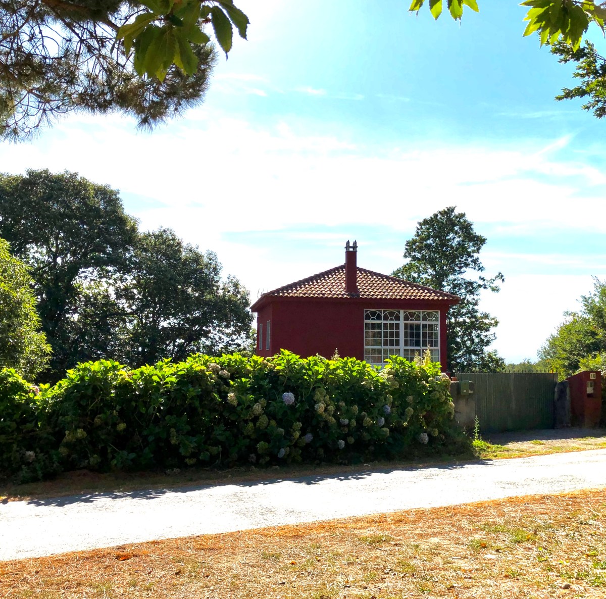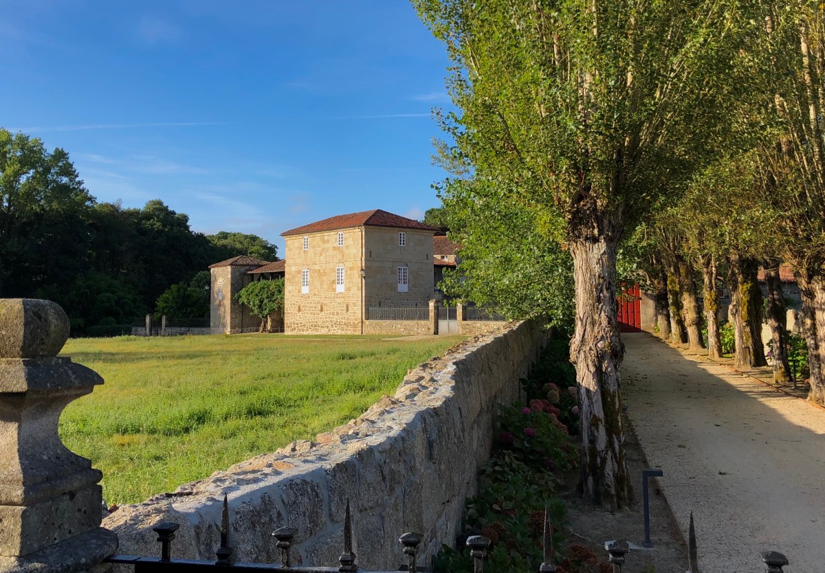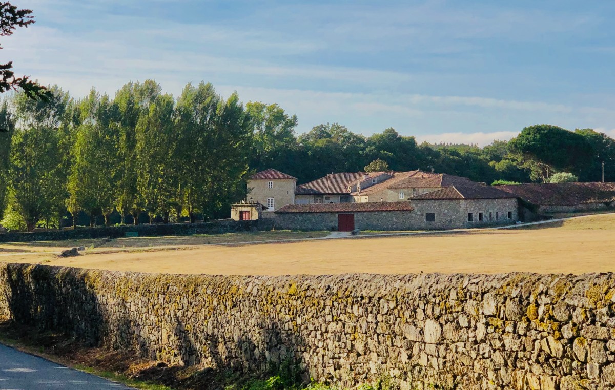 Soon I’m on a tree-lined asphalt road that meanders through the countryside. After a sharp turn the vista opens up and on my left is a magnificent country manor set approx. 80 meters off the road, guarded by a two-meter high wall and accessible only through an iron gate leading to a driveway that leads to another, more formidable, red wooden gate. I learn it’s the “Pazo de Reguengo,” and though – or because – there’s little description of what exactly it is, I imagine it to be a royal country home. The full scope of the Pazo and its surrounding land only becomes more evident as I walk on several hundred meters and, after climbing on a boulder outside the wall, I can peer over it.