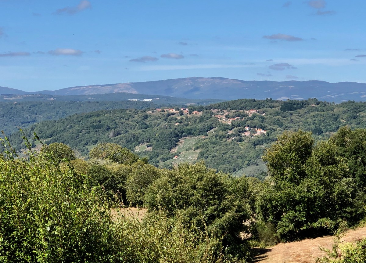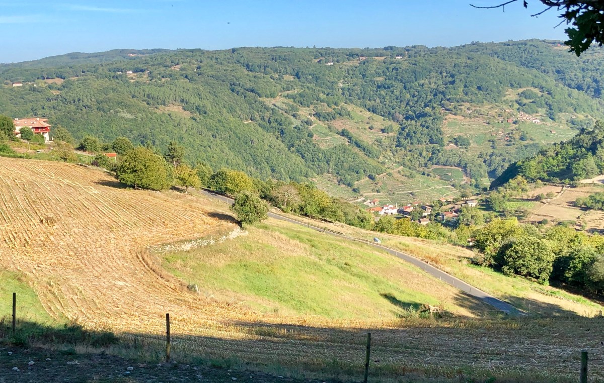 At the top of the hill I have one more look behind me and see the forested other side, the river and the village far down below. Then my path flattens out again through fields, eventually leading to the town of Chantada.