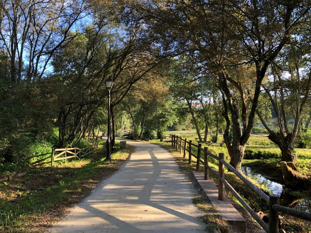 The Paseo runs below the level of the city and the surrounding countryside, tracking a small stream, the “Rio Pontinas.” Its lush landscaping, combined with its location leaves it as quiet as a chapel, only in nature. The path runs on both sides of the stream, occasionally crossing it via wooden bridges. Besides myself on an early Saturday, there were the occasional runners and walkers, many with dogs. Suddenly I became conscious of the fact that here, on this charming pathway, I was actually sharing the Camino with more people than I had on any other day prior to this. They might not have been pilgrims, carrying packs and heading toward Santiago, but for this short moment they were my companions – the first and the last – on The Invierno.
