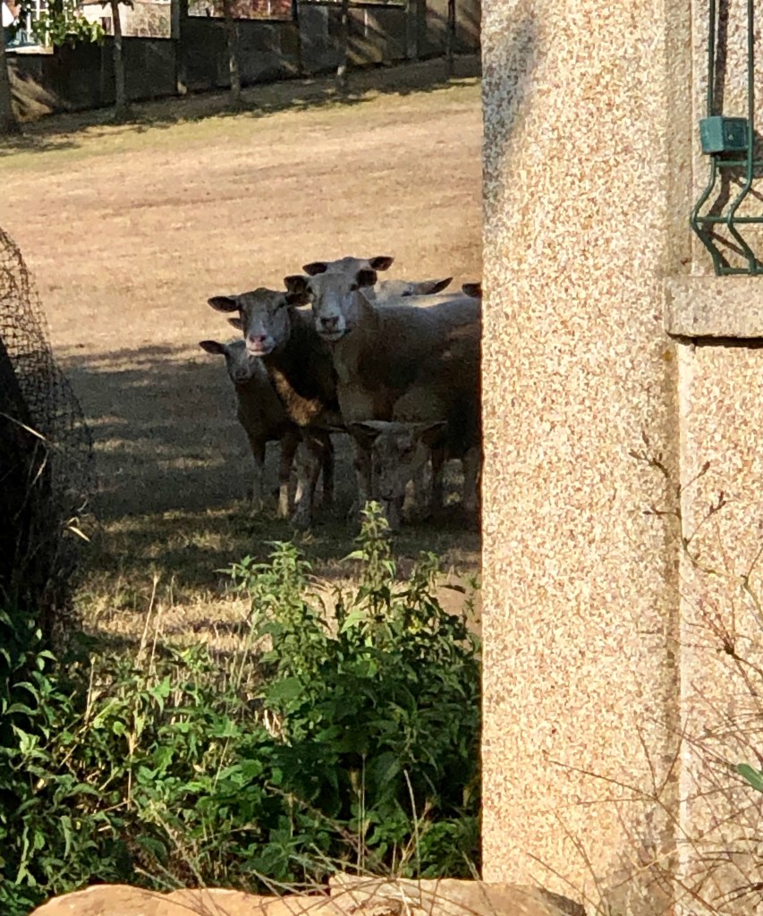 Cautious sheep tracking my progress before they cross the path to begin their grazing.