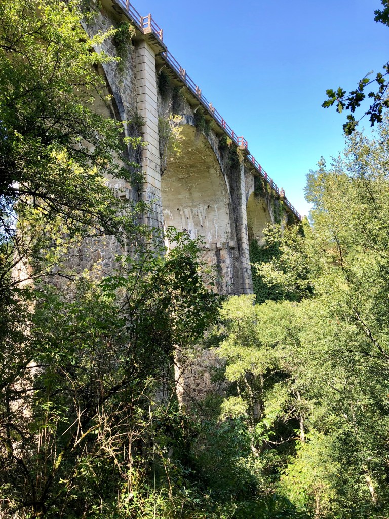 With a simple step forward I was now on the Camino Sanabres, a relatively short part of the network of Caminos through the Iberian peninsula. The Sanabres begins in the Galician city of Ourense and is an extension of the much longer Camino de la Plata that begins in southernmost Spain. Though the label of my path had changed, nothing else had, I was still alone and still headed toward Santiago de Compostela, now just two days away. It continued to be a tranquil walk across gently rolling terrain through fields (potatoes being harvested on a much smaller scale than in my home state of Idaho), over streams, alongside quiet pastures, and skirting clusters of farmsteads. Perhaps the most dramatic sight of the day was an immense railroad bridge high over the narrow valley through which I was walking. Soon afterwards a crossing of a smaller, much older, Roman bridge eventually led me to the outskirts of Silleda, my destination for this day.